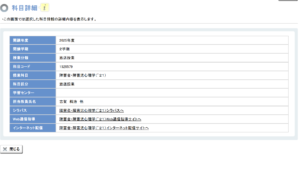 動画を見たい科目をクリックすると以下のような画面が表示されるので、「インターネット配信サイトへ」をクリックすると、動画に辿り着きます。