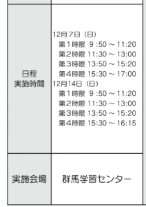 ↓は群馬学習センターで開講される心理学実験3のスケジュールです。2日間で済むなら仕事をしていても無理なく受講できそうです。